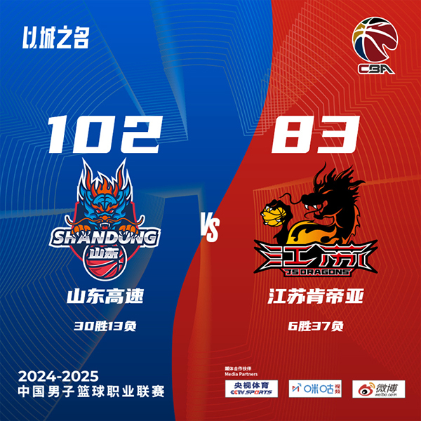 JRS直播吧讯北京时间3月21日讯 CBA常规赛,山东今日迎战江苏,前者近来取得三连胜,后者则是遭遇八连败。比赛上来,两队就打得十分胶着,场上比分交替领先,江苏这边古德温状态火热首节就轰下17分5篮板,次节前半段双方继续保持拉锯,但本节两队多次发生冲突,江苏似乎受到影响在后半节几乎没有再得分,山东在半场结束时已经领先到19分;下半场回来,山东的进攻表现下滑明显,但江苏这边也没有把握住机会,分差一直在十分以上,末节山东先拿六分将分差重新扩大到二十分以上,比赛就此失去悬念,最终山东轻取江苏,迎来四连胜的同时也送给后者九连败。