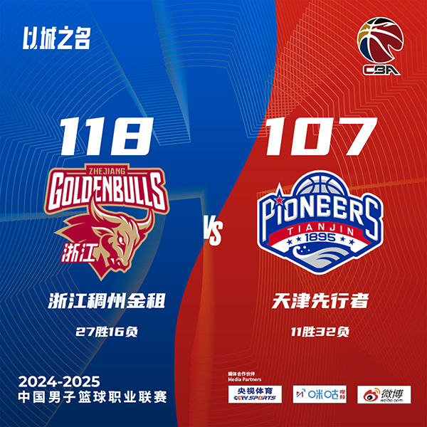JRS直播吧讯 北京时间3月22日讯 CBA常规赛,浙江主场迎战天津。浙江26胜16负排在联赛第10,天津11胜31负排在第16。上半场,浙江率先发力,内外开花取得两位数领先,天津不断冲击内线努力追赶,浙江连中三分迅速回应,次节双方大打对攻,约克火力全开,连中三分带队保持优势,半场战罢浙江66-53领先天津。下半场,天津发起反击缩小分差,约克延续火力带队保持优势,末节两队继续对攻,浙江火力更猛不断扩大优势,杜伯超和王奕博发生口角双双吃T,杜伯超犯满离场。最终,浙江118-107轻取天津,主场过关。