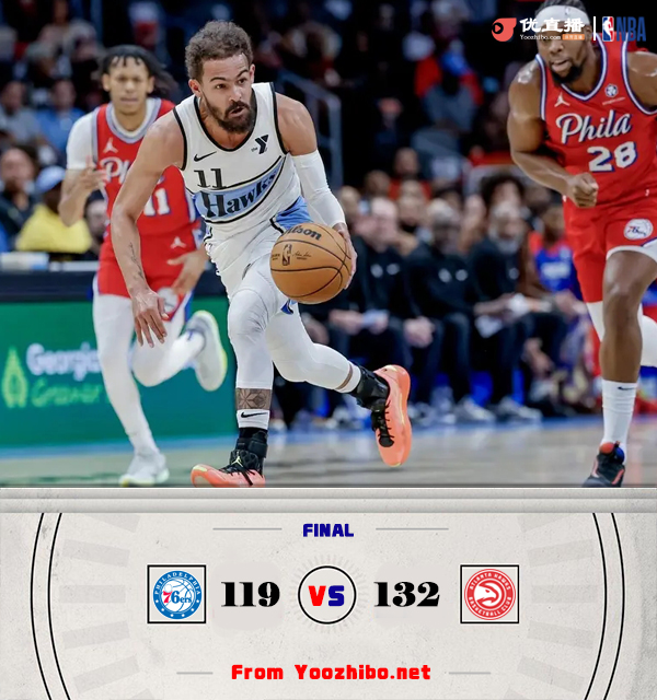 老鹰132-119击败76人 杨28+12 里萨谢22分 格莱姆斯26+6