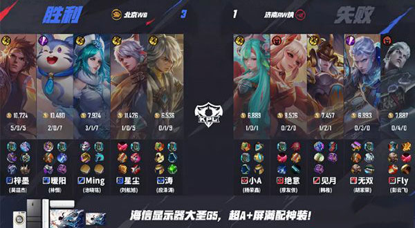第二局:前期WB先后击杀RW中野,经济逐渐领先。八分钟WB配合击杀RW射辅,经济差距来到五千。十三分钟巨大经济优势下,北京WB先到赛点!本局MVP为北京WBMing (池晓铭)不知火舞!