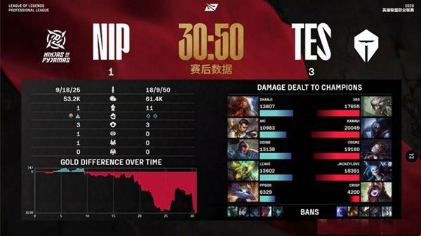 JRS直播吧讯 北京时间2025年2月24日 2025LPL第一赛段淘汰赛第三日比赛,由NIP对阵TES!最终TES以3-1的大比分战胜NIP晋级下一轮对阵BLG。
