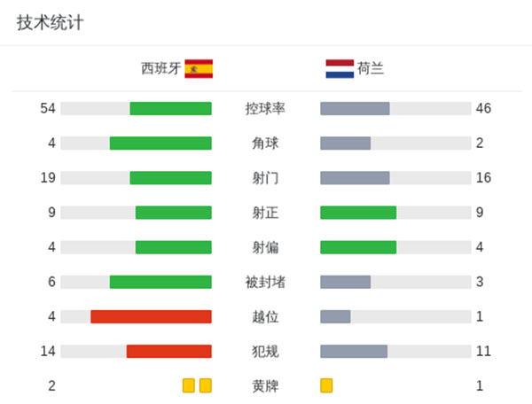 第67分钟,西班牙后场断球反击,尼科-威廉姆斯接到队友直塞,吸引防守后分球给到无人盯防的奥亚萨瓦尔,奥亚萨瓦尔左脚攻门被维尔布鲁根扑出,随后头球补射打进,西班牙2-1荷兰。