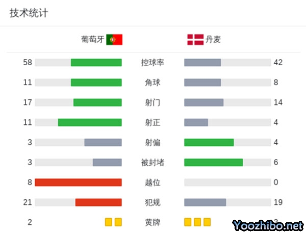 最终葡萄牙加时5-2总比分5-3丹麦晋级四强对阵德国。