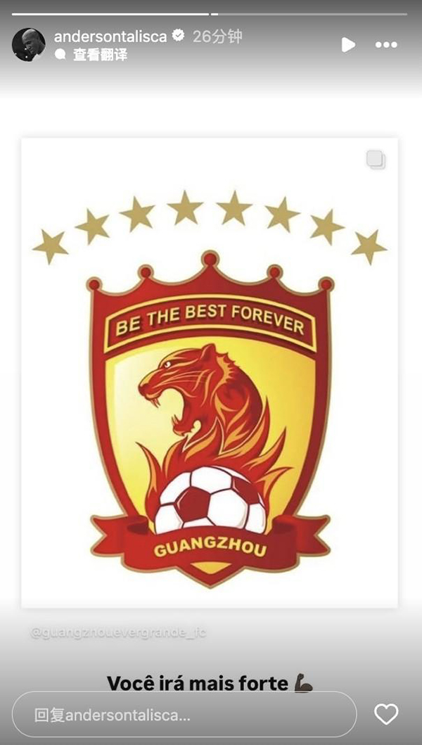 塔利斯卡发文盼八冠王归来,广州队球迷给功勋点赞