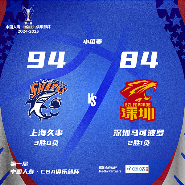 JRS直播吧11月16日讯 CBA俱乐部杯惠州赛区,上海对阵深圳,本场比赛前两队都在俱乐部杯迎来连胜。深圳上来就多点开花接连反击打出15-4梦幻开局,洛夫顿手感一般,威尔逊中远投止血,但深圳还能回应并在首节领先9分,次节上海开始追分,打了不到2分钟深圳就犯满,随后深圳又陷入得分荒,上海接连外线三分反超比分,半场上海领先4分。下半场,深圳进攻端还是不在状态,打了半节上海14-4进攻波拉开双位数领先,三节上海领先到17分,末节上海接连三分命中直接拉开20分以上领先,深圳追分未果,最终上海94-84轻取深圳,拿到3连胜。