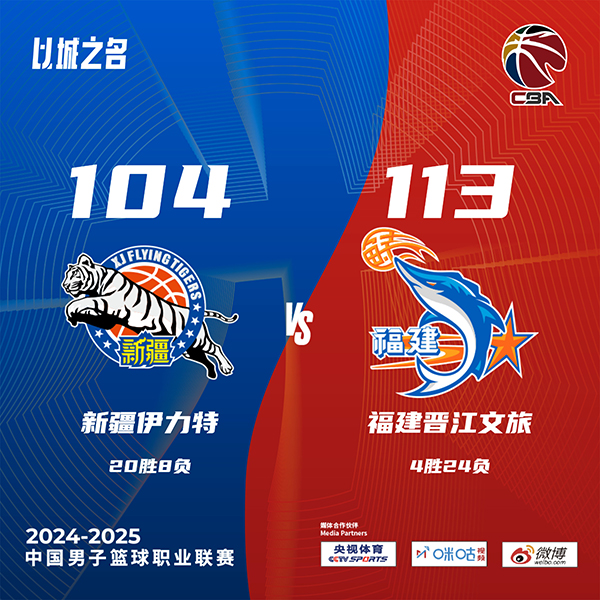 JRS直播吧讯北京时间1月10日讯 CBA常规赛,新疆主场迎战福建。新疆20胜7负排在联赛第四,福建3胜24负垫底。一开场,齐麟高效输出,邹阳内外开花还以颜色,次节皮特森连中三分将分差拉开到两位数,福建多点开花迫近比分,路易斯-金三分一度反超,新疆三分3连击打出12-3以63-57领先结束上半场,下半场,双方继续缠斗,比分始终紧咬,曾凌铉连中三分带队反超,末节福建稳扎稳打保持优势,新疆连投带罚苦苦追赶无果。最终,新疆爆冷主场104-113不敌福建。