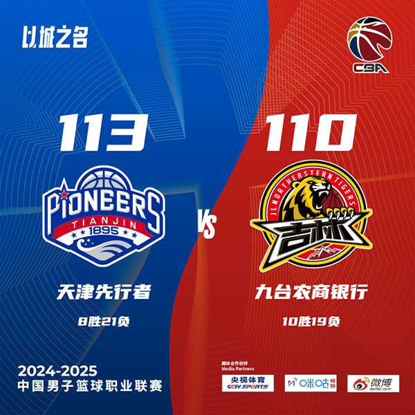 JRS直播吧讯 北京时间1月11日讯 CBA常规赛,天津主场迎战吉林。天津7连败,以7胜21负排在联赛倒数第三,吉林3连败,以10胜18负排在联赛第十三。上半场,天津率先发力,多点开花取得两位数领先,吉林不断冲击内线连投带罚拿分追赶,大卫-詹姆斯火力全开,半场狂砍31分帮助天津65-62领先吉林结束上半场。下半场,大卫-詹姆斯延续火力,天津持续输出将分差拉开到两位数,末节天津命中率下降,吉林展开反击将分差迫近到只剩5分,刘天意关键两罚不中,拉维特罚球杀死比赛。最终,天津113-110力克吉林,结束了自己的7连败,