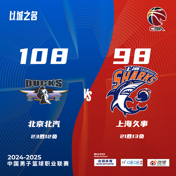 JRS直播吧讯北京时间2月27日,CBA常规赛北京北汽主场迎战上海久事,本场上海背靠背作战,王哲林缺阵。首节双方紧咬比分,第二节后半段北京一波高潮拉开分差,半场北京61-52上海,第三节北京一度领先14分,随后上海李弘权、布雷德索联手追至2分分差,末节后半段北京再度打出反击高潮收下比赛,最终北京108-98上海。