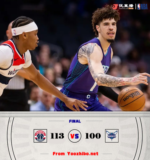 JRS直播吧讯3月2日讯 NBA常规赛,黄蜂主场迎战奇才。黄蜂5连败,以14胜44负排东部倒数第二,奇才10胜48负紧随其后。上半场,双方开场势均力敌,比分始终紧咬,布里奇斯高效发挥,奇才多点开花给出回应,次节两队大打对攻,奇才多点开花占据主动,黄蜂不断冲击篮筐连投带罚迅速回应,半场战罢黄蜂59-54领先奇才。下半场,黄蜂命中率骤降,奇才持续发力一举反超比分并获得两位数优势,末节斯玛特里突外投连续拿分带队扩大领先,黄蜂苦苦追赶无果。最终,奇才客场113-100击败黄蜂,赛季4杀对手完成横扫。