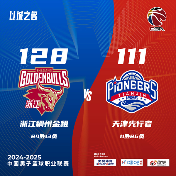JRS直播吧讯北京时间3月8日讯 CBA常规赛,浙江主场迎战天津。浙江23胜13负排联赛第9,天津11胜25负排第15。比赛开始,双方开场大打对攻,大卫-詹姆斯高效发挥,吴前连中三分给出回应,次节浙江持续发力,达米安-琼斯内外开花带队将分差拉开到两位数,大卫-詹姆斯延续火力带队追赶,半场战罢浙江69-58领先天津。易边再战,浙江攻防两端压制天津,轰出15-2的攻击波将分差拉开到30分以上,末节天津发起反击稍稍缩小分差,无奈之前挖坑太大。最终,浙江128-111轻取天津,主场过关。