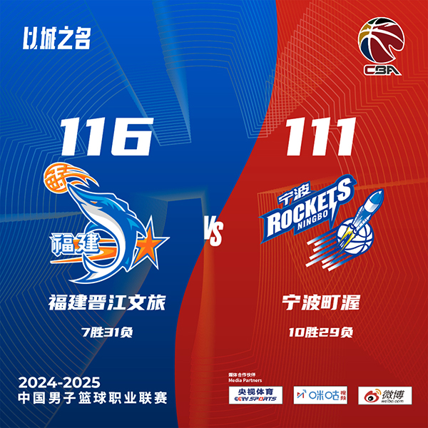 JRS直播吧讯北京时间3月12日讯 CBA常规赛,福建主场迎战宁波,福建2连败后6胜31负联盟垫底,宁波2连胜后10胜28负联盟第16位。比赛开始,福建率先发力打出10-4开局,宁鸿宇状态出色弹无虚发连得10分回应,邹阳手感也不错,双方展开对攻战,比分胶着,首节宁波领先2分,次节乔丹-霍华德上来连中三分砍下10分助宁波拉开比分,但奎因-库克手感不错能回应,联赛路易斯-金连续4记三分反超比分,半场福建领先3分。下半场,双方命中率都有下降,但比分还是很胶着,王子瑞接连突破上篮砍下7分帮助宁波反超,但路易斯-金联手库克回应7-0守住2分领先,末节诺伊发力里突外投帮助宁波取得领先,刘金雨关键三分,路易斯-金里突外投连砍7分再反超,比赛趋于白热化,马奇关键两次失误,黎伊扬和路易斯-金连续抢断帮助福建反超比分,邹阳失误后王俊杰也失误,邹阳两罚杀死比赛,宁鸿宇三分不中,最终福建116-111险胜宁波。
