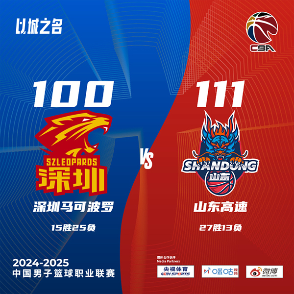 JRS直播吧讯北京时间3月15日中国男子篮球职业联赛 常规赛,深圳马可波罗对阵山东高速。半场深圳61-62山东,最终深圳100-111山东。深圳马可波罗马凯尔-约翰逊23分1板6助,特雷沃-汤普森18分8板1助;山东高速马基斯-克里斯31分15板1助,陈培东17分1板1助。