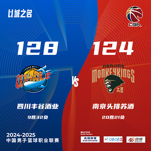 JRS直播吧讯北京时间3月16日讯 CBA常规赛,四川迎战同曦,四川目前遭遇11连败,同曦最近取得2连胜。开场后两队就打得比较胶着,郭昊文和田宇恒外线轮番轰炸三分,四川依靠外援的发挥总能及时回应将比分追上,两队多次打成平手。第二节两队还是主要围绕外援来发动进攻,场上比分交替上升,同曦在半场结束前打出一波7-0的攻势取得微弱优势。易边再战,两队上来都是选择在内线绞杀,同曦一度将分差拉大到9分,亨特再度爆发帮助四川打出16-4的高潮在三节结束时反超比分。末节刚回来四川延续攻势将分差拉大,左朕年状态不错接连拿分,利夫和郭昊文带队努力追分,同曦外线也找到手感连续投进三分将比分追平。亨特站出来连进三球帮助四川再度取得优势,最后时刻同曦再度反超比分,曾繁日送了个发球前的犯规,亨特用罚球将比赛拖入加时。加时赛中两队依旧打得难舍难分,左朕年投进一记关键三分,同曦未能再追上比分,最终四川加时128-124逆转同曦结束11连败。
