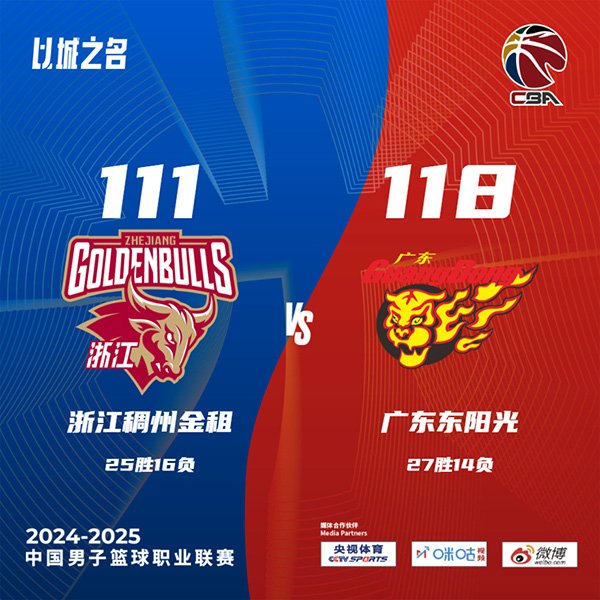 JRS直播吧讯北京时间3月16日讯 CBA常规赛继续进行,广东客场挑战浙江,浙江助教鞠鹏场边执教,丁伟担任球队顾问,目前浙江25胜15负位列联赛第8,广东26胜14负排在联赛第6位。首节开打后浙江率先进入状态,琼斯内外结合独得12分,约克连投带罚续上火力,两人联手率队确立优势,首节结束时浙江领先11分,次节回来,浙江进攻出现停滞,广东回敬12-0攻击波蚕食分差,末段贝兹利和伯克连中三分,半场战罢,广东反超1分。短暂休整后广东延续火力内外开花,浙江进攻滞涩未能及时回应,三节结束后广东已经领先10分,末节决战,场上形势风云突变,约克无人可挡予取予求,浙江一度反超比分,但伯克连投带罚守住胜果,最终广东118-111力克对手。