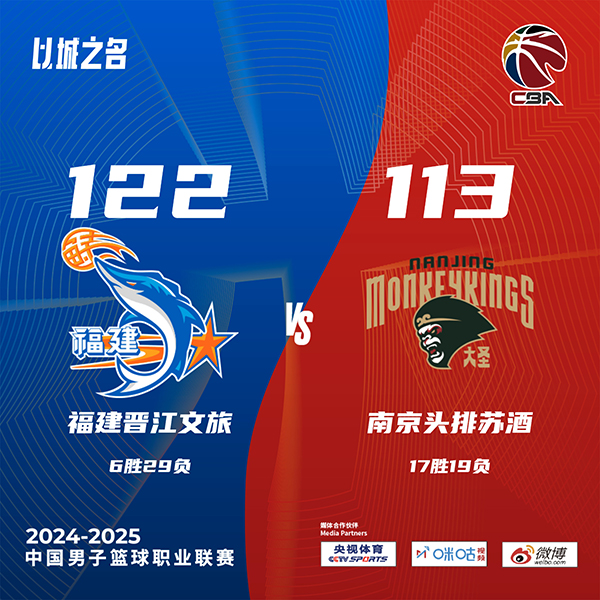 末节,福建晋江文旅再度找到比赛节奏,逐步将差距拉开,并在一度反超9分。南京头排苏酒随后及时调整,努力缩小分差。最终,在本节比赛中,福建晋江文旅的路易斯·金获得12分,帮助球队以122-113赢得比赛,锁定胜局。