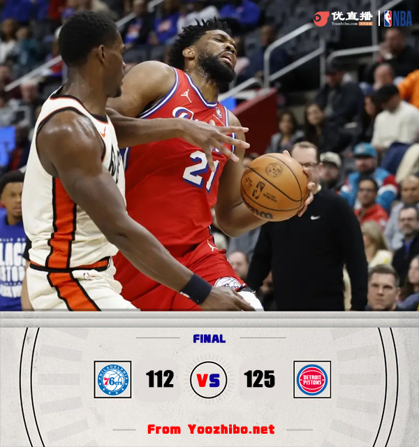 JRS直播吧讯 北京时间2月8日讯 NBA常规赛今日继续开打,活塞今日坐镇主场迎战76人,本场比赛76人三位核心久违的全员出战,活塞方面核心康宁汉姆缺阵。首节之争双方状态令人大跌眼镜,三位核心全员出战的76人虽然保持不错的进攻状态但防守端完全阻止不了对手,而缺少核心康宁汉姆的活塞则多点开花,他们单节命中7记三分爆砍42分的同时首节就取得15分领先;次节76人依旧无法阻止对手,活塞方面比斯利承担起进攻端重担单节拿下12分,这一节活塞再砍36分,半场轻松拿到78分的同时取得29分的巨大领先。休息归来76人终于找到状态,上半场状态失常仅得3分的恩比德在这一节爆砍20分,不过76人虽然回敬单节39分的攻势但分差仍然很大;末节活塞开局稍显被动但领先优势让他们感受不到太大威胁,后半段则稳住局面重新拉开比分锁定胜局。最终,活塞主场力克76人拿下比赛。