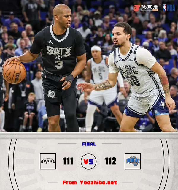 JRS直播吧讯 北京时间2月9日讯 NBA常规赛,魔术今日迎战马刺,前者上场比赛不敌掘金,后者则是惜败黄蜂,此役萨格斯缺战。比赛上来,两队打得相对胶着,不过在11-11平后巴恩斯突然爆发,个人连中了五记三分将分差拉开到两位数,但在首节后半段马刺的命中率出现下滑,魔术抓住机会完成反超,次节双方都曾打出小高潮,分差却没有再被拉开,半场结束时马刺领先3分;下半场回来,马刺占据了场上的主动权,在凯尔登和卡斯尔连续打成2+1后分差终于拉开到两位数,末节小瓦格纳和班凯罗联手追回比分,比赛悬念保持到了最后,关键时刻班凯罗命中高难度跳投反超,文班亚马绝杀球不中,最终魔术险胜马刺。