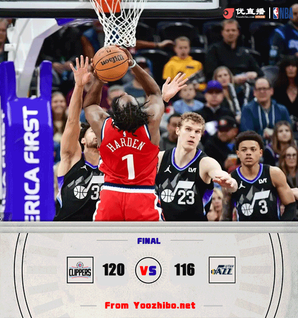 JRS直播吧讯2月14日 NBA常规赛继续开打,爵士今日坐镇主场迎战快船,本场比赛因为背靠背的原因,快船核心之一的莱昂纳德轮休缺阵,新援本-西蒙斯则迎来快船生涯首秀。首节之争快船开局表现尚可但进入轮换阶段突然陷入被动,爵士短短4分钟里命中5记三分并送上17-8的攻势抢占主动权,期间本西接哈登秒传空接扣篮拿下快船生涯第一分;次节开局快船依旧被动,爵士则再送14-2的攻势直接拉开19分的优势。快船在前4分40秒里仅得2分的情况下及时回暖,哈登连续制造犯规拿下7分,鲍威尔协助抢分帮助球队追至6分进入下半场。休息归来快船进攻端只能依赖哈登和鲍威尔,而爵士也是抓住机会很快拉开两位数领先。不过末节快船总算不再慢热开局14-4的攻势直接扭转局势,这之后双方一路僵持,快船错失拉开比分的机会,爵士则依靠科利尔的罚球拖入加时。加时赛鲍威尔状态火热连续拿分为快船抢占先机,他一人拿下9分,包括最后连续上篮得手为球队取得5分领先奠定胜局。最终,快船加时力克爵士拿下比赛。