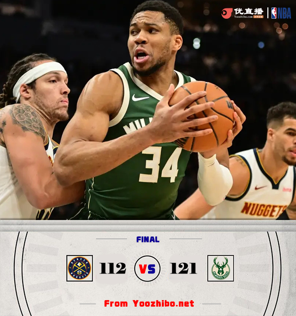 JRS直播吧讯北京时间2月28日NBA常规赛,上半场两队展开拉锯战,半场雄鹿54-57掘金;末节雄鹿逐渐将分差拉开,最终雄鹿121-112掘金。密尔沃基雄鹿字母哥28分19板7助,洛佩兹22分4板3助;丹佛掘金约基奇32分14板10助,贾马尔-穆雷20分3板5助。