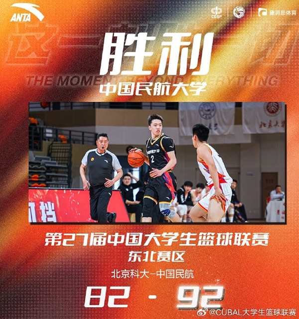 JRS直播吧讯3月12日讯 CUBAL东北赛区今日继续开打,北京科技大学和中国民航大学迎来一场交手。首节之争中国民航以马梓豪的2+1为首拿到8-2的开局,但北京科大方面虞法舜连拿6分迅速追上比分;随后双方一路拉锯,北京科大状态稍胜一筹,杨澳节中命中三分后帮助球队拉开6分领先,中国民航则依靠孙诗的罚球追至3分结束第一节。次节北京科大一直占据主动,高铭泽的三分帮助他们拿到9分的领先;中国民航整体手感不算太好,他们依靠连续冲击篮下制造杀伤并依靠罚球紧追比分,末段崔雍鑫命中关键三分近一步缩小分差。半场战罢,北京科大46-42领先中国民航。休息归来中国民航虽然上来错失两记罚球,但崔雍鑫和李波翰的相继得分迅速追上比分;北京科大则状态回落失去掌控权,杨驷骏末段连续飚进两记三分后中国民航完成反超。末段越战越勇的中国民航依靠李波翰和崔雍鑫两人的再度得分拉开7分分差,不过高铭泽最后回敬三分追至4分结束第三节。末节决胜中国民航积极拼抢多次拿到进攻篮板并转化得分,崔雍鑫状态火热再度拿分为球队拉开8分优势;随后拉锯战双方整体效率都不是很高,分差一直在8分附近徘徊拉锯,但手握领先的中国民航牢牢控制局面,末段杨驷骏再度命中三分,中国民航在进入读秒前取得10分领先奠定胜局。最终,中国民航大学92-82击败北京科技大学拿下比赛。
