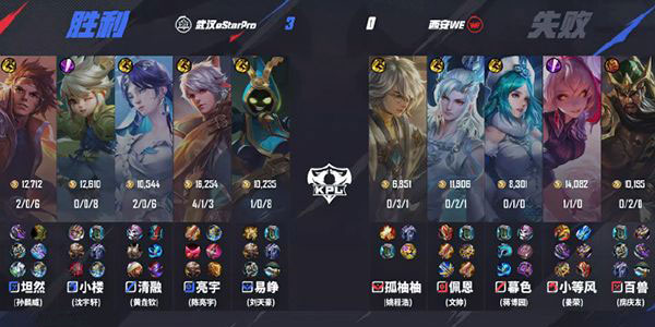 第三局,WE前期节奏偏慢,eStar抓住机会主动开团,易峥太乙奔狼多次精准控制张良,打乱WE阵型,正面团战屡遭压制。最终亮宇守约爆发输出,三杀收割对手,eStar零封对手拿到胜利。本局MVP为eStarPro坦然 (孙麟威)孙策!