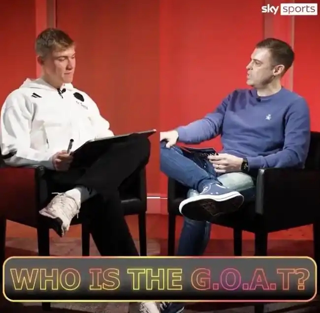 JRS直播吧讯 霍伊伦参加天空体育的节目,被主持人问道谁是他心目中的GOAT,霍伊伦毫不犹豫的在白板上写下C罗。