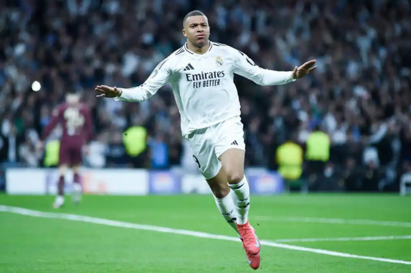 JRS直播吧讯欧冠淘汰赛附加赛次回合比赛,姆巴佩上演帽子戏法,帮助皇马主场3-1击败曼城,两回合总比分6-3晋级16强。