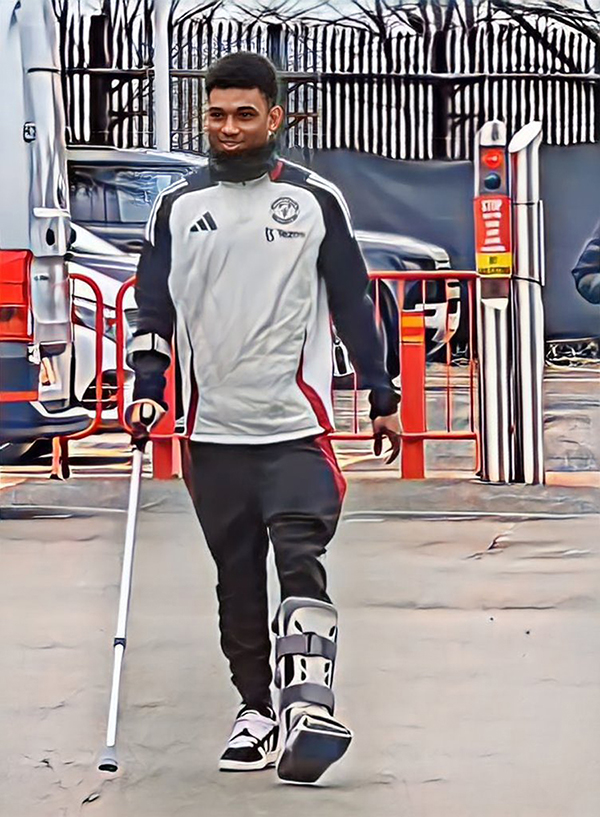 JRS直播吧讯曼联上周的足总杯比赛中,因伤缺阵的阿马德·迪亚洛拄着拐杖、穿着防护靴出现在老特拉福德助威。他的现身未能鼓励队友晋级,球队输掉点球战被淘汰出局。然而,主帅鲁本·阿莫林随后透露,这位22岁边锋可能在赛季结束前伤愈复出,原本报销的赛季「死而复生」。